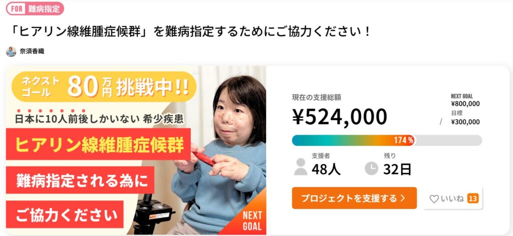 奈須さんがクラウドファンディングを通じてこの事実を世間に広め、難病指定に向けて行動を開始されました。